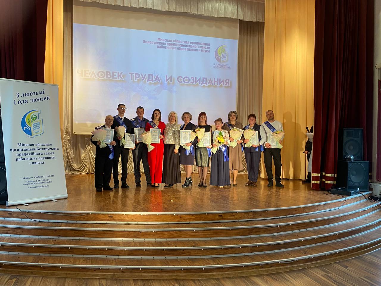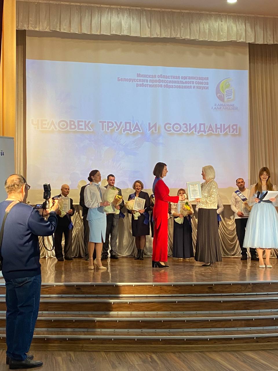 21.10.2025Сегодня в Слуцком центре детского творчества состоялась церемония чествования «Человек Труда и Созидания». Сорок пять работников системы образования Минской области внесли свой вклад в общий каравай Минщины, среди которых Курило Светлана Николаевна, директор средней школы N 1 г. Несвижа, Головко Ольга Владимировна и Гаврик Елена Альбертовна, учителя средней школы N 2 г.п. Городея, Абрамович Фёдор Викторович и Янушко Илья Анатольевич, учителя Сновской средней школы, Гарбуз Татьяна Ивановна, кухонный рабочий Лысицкой средней школы, Жерко Татьяна Викторовна, помощник воспитателя Городейского детского сада N 2.