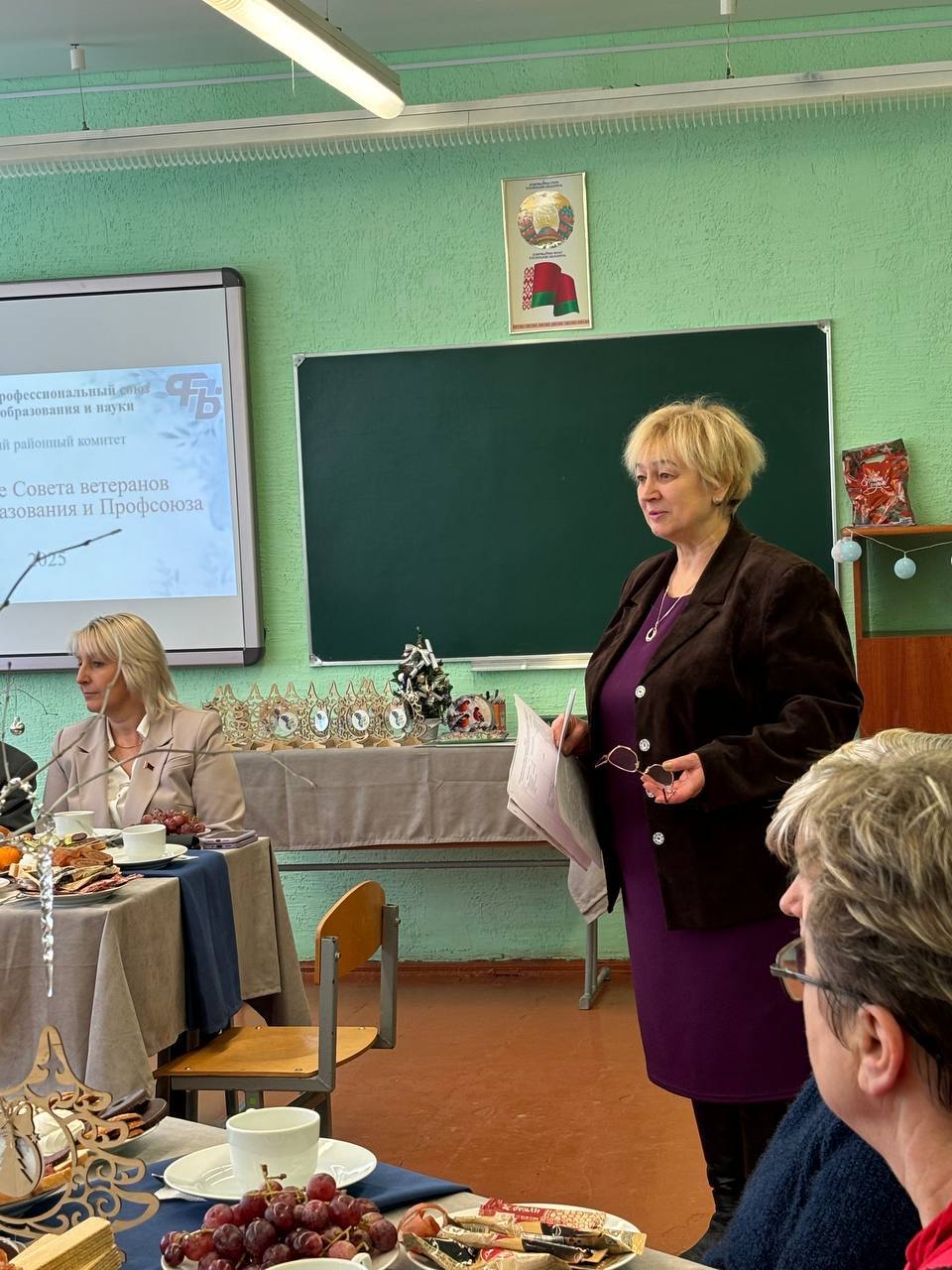 30.12.2025С особым вниманием и душевной теплотой к собравшимся обратилась Людмила Шкраба, председатель Несвижской районной организации Белорусского профессионального союза работников образования и науки, а также Зоя Маляр, председатель Совета ветеранов системы образования и Профсоюза.