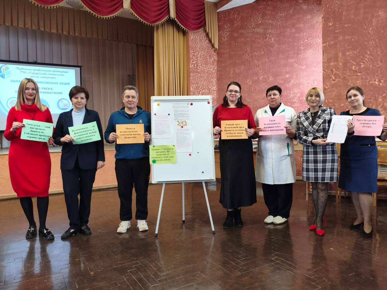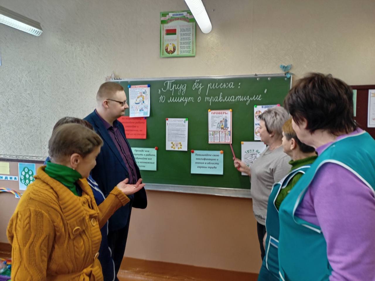 Старт профилактической акции дан в одной из самых многочисленных первичных профсоюзных организаций — профсоюзной организации ГУО «Городейская специальная школа-интернат». Профактив школы-интерната поделился актуальной статистикой по несчастным случаям в Минской области и разобрал ключевые правила охраны труда, обязательные для соблюдения в учреждении. Каждый работник получил памятки-инструкции для безопасной работы.